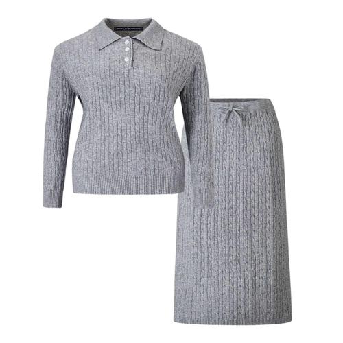 [미니멈에브리데이][미니멈 에브리데이]케이블 카라 니트 밴딩 스커트 셋업 (EB4OW004D)