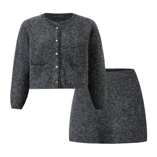 [미니멈에브리데이][미니멈 에브리데이]스팽글 가디건 미니 스커트 울 셋업 (EB4OW002D)