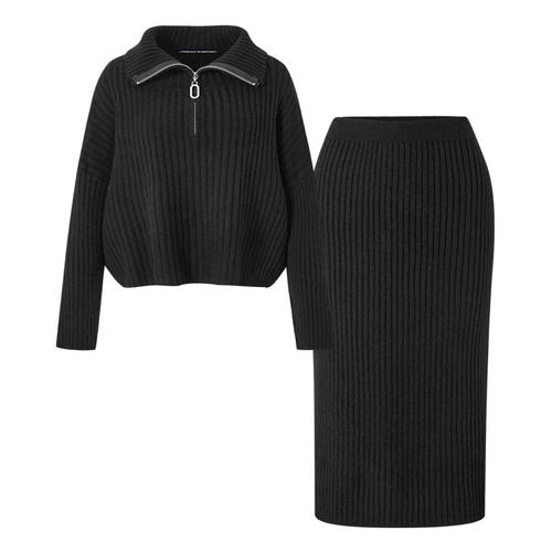 [미니멈에브리데이][미니멈 에브리데이]반집업 골지 니트 밴딩 스커트 셋업 (EB4OW015D)