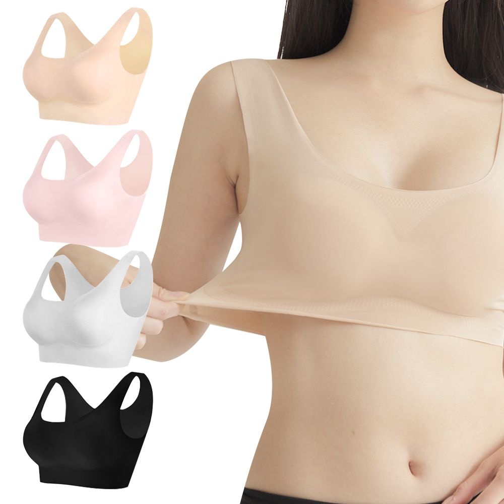 울트라 얇은 통기성 얼음 실크 탑 브래지어 여성의 Bustier 속옷 원활한 다시 홀터 조끼 랩 브래지어 작은 가슴 함께