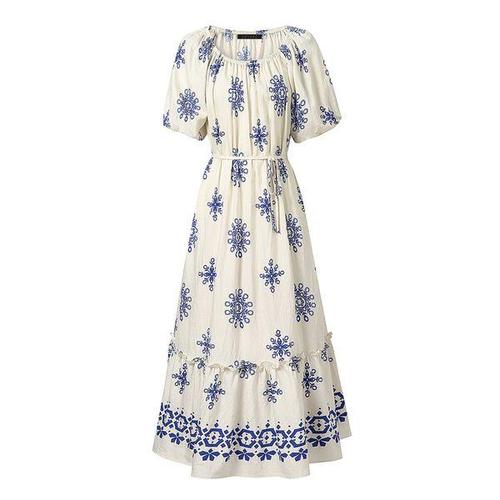[리빌모아]여자 에스닉 백크로스 롱원피스 DJW-OPS-SGSSDR222-화이트블루