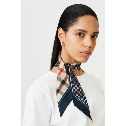 갤러리아_DCSC5F121N2 닥스 [SILK 100%] 네이비 체크프린트 쁘띠 실크스카프