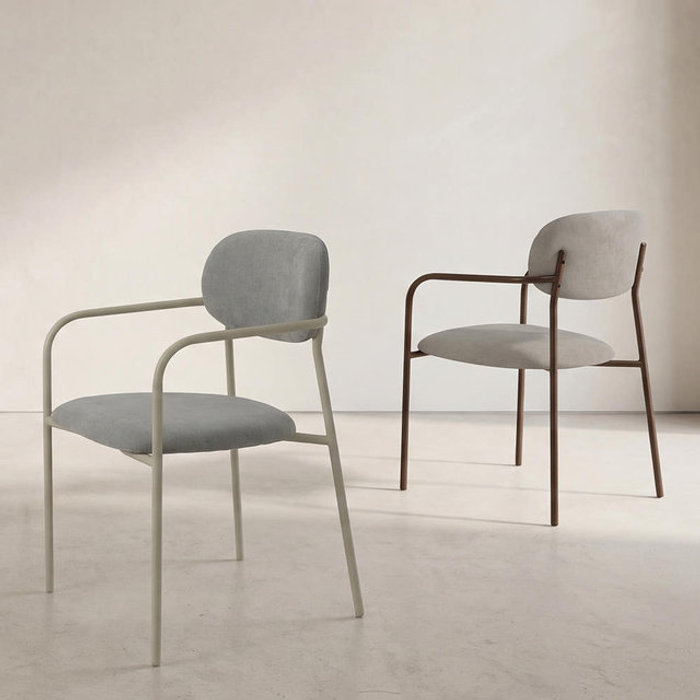 라움에스알 아치 암체어 고급 패브릭 편한 식탁의자 인테리어 철제 카페 의자