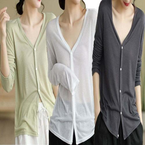 [셀럽하우스]에어컨 MVHZ2570 바람 추울 때 얇은 v넥 여성 시스루 가디건