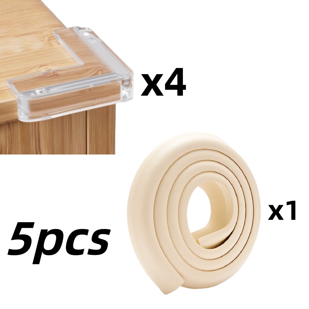 TEMU 5개 충돌 방지 세트 (2미터 확장 범퍼 포함), 테이블 모서리, 침대 가장자리, 벽 모서리용 부드러운 패딩으로 부딪힘 및 넘어짐 방지, 드릴 불필요, 거실 및 침실과 같은 다양한 환경에서 가정 안전에 적합