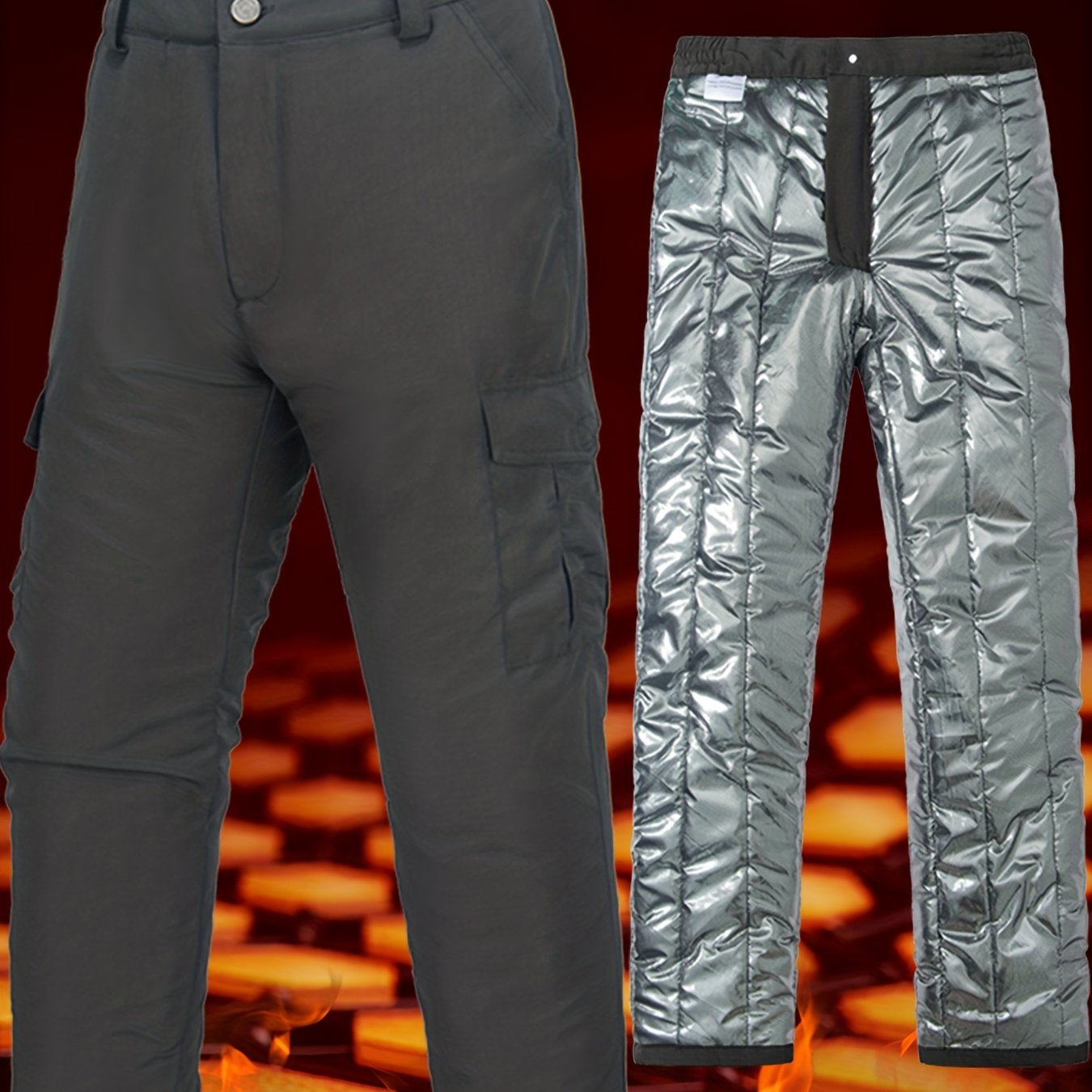 TEMU 남성용 보온 반사 겨울 바지 - 다용도 포켓 디자인의 내구성 강한 방한 작업복, 찢김 및 긁힘 방지, 하이킹, 사냥, 스키, 야외 활동용 - 세탁기 사용 가능 (포함되지 않음) - 겨울철에 이상적|남자바지
