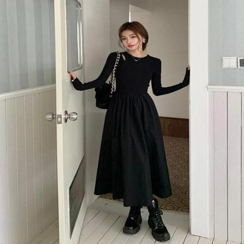 [다잇템][다잇템] 여자 골지 슬림 클래식 무지컬러 롱 에이라인 원피스_23445313_588872