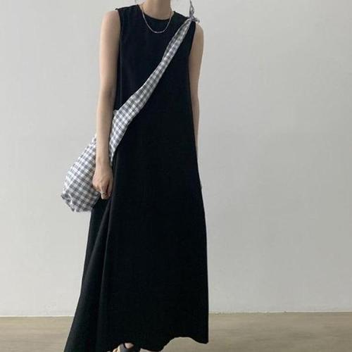 [다잇템_패션]여자 롱 무지컬러 슬리브리스 에이라인 원피스