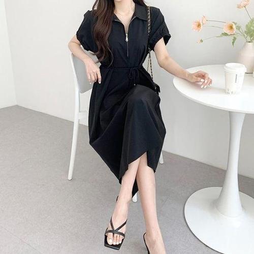 [다잇템][다잇템] 여성 시보리 베이직 집업 롱 에이라인 벨티드 원피스_22887750_588872