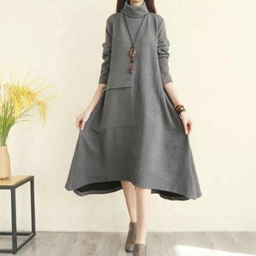 [룽스]포켓 에이라인 목폴라 원피스 가을 티셔츠 겨울