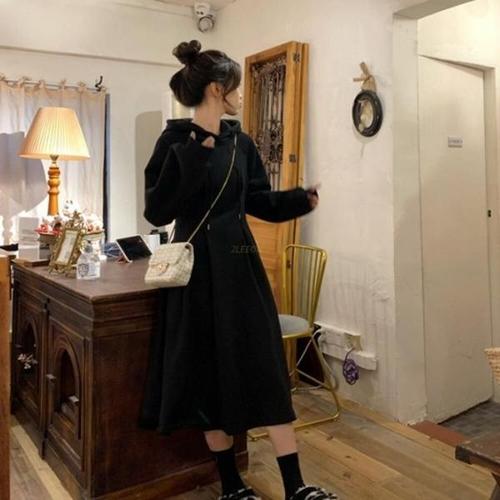 [다잇템]여성 핀턱 에이라인 롱 캐쥬얼 후디 원피스