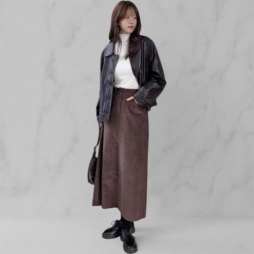 [다잇템][다잇템] 여성 원컬러 롱 두툼한 골덴 에이라인 치마_23740702_588872