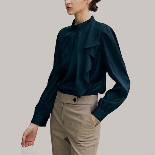 [스타일온미]에이렌 드롭 러플 새틴 블라우스