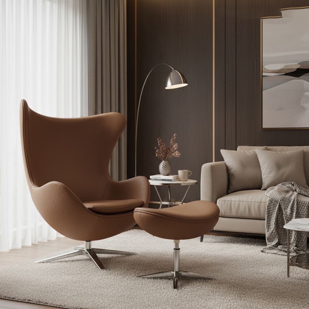 [리퍼] 라운드 에그체어 1인 소파 풋스툴 세트