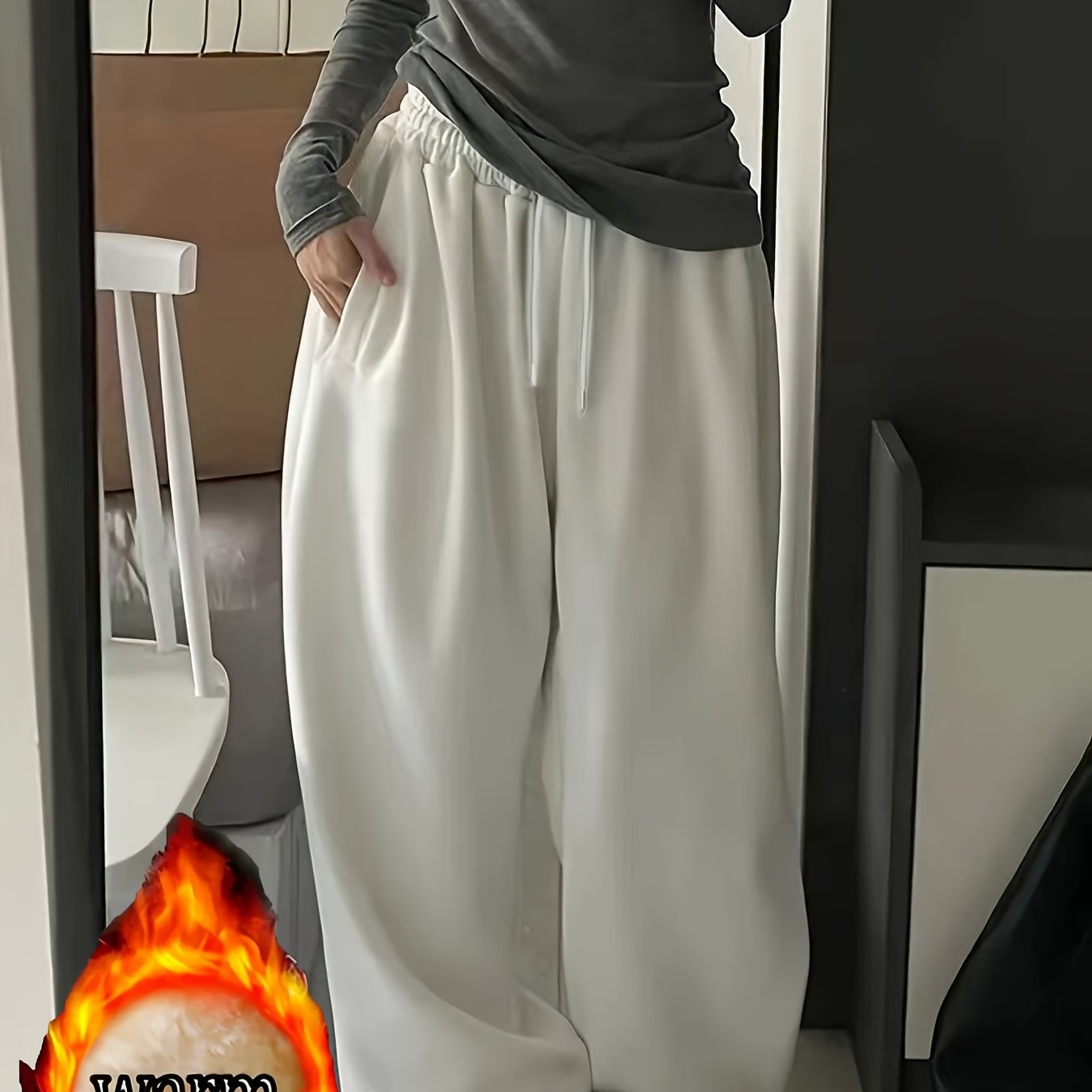 TEMU 여성용 두꺼운 기모 안감 조거 팬츠 - 겨울 따뜻함, 루즈핏 캐주얼 바지, 탄성 허리 밴드 & 커프스 발목, 단색 블랙, 가을/겨울에 적합