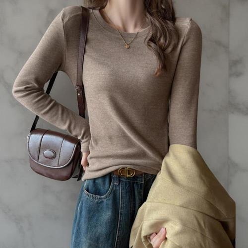 슬림 여성 티셔츠 골지 니트티 여자 긴팔 니트 티셔츠