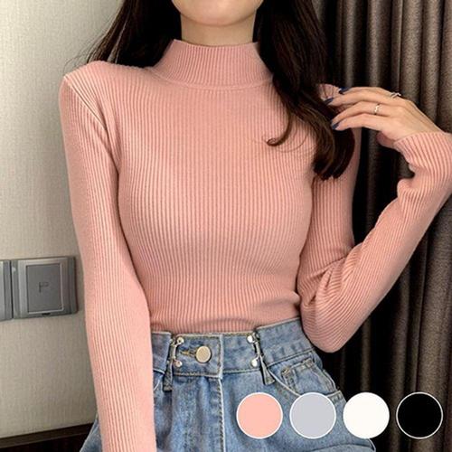 [오노마] ONM 여성용 반목폴라 니트 티셔츠 슬림핏 스웨터 데일