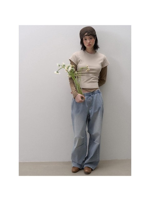 [에잇세컨즈] 틴 워싱 데님 밴딩 팬츠블루 (456Z21SC2P)