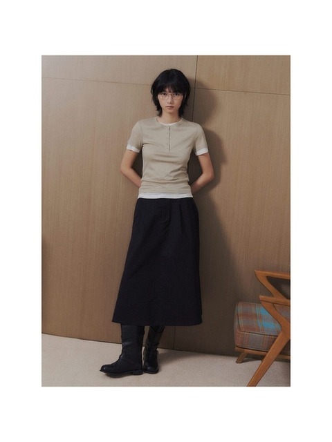 (356127WM2H) [에잇세컨즈] 벨티드 H라인 롱스커트 카키