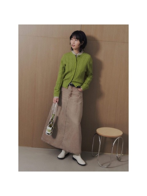 [에잇세컨즈] 피그먼트 데님 롱스커트옐로이시 브라운 (356227CCMB)