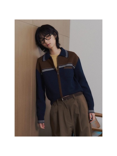 [에잇세컨즈] 배색 니트아우터네이비 (35625ACC1R)