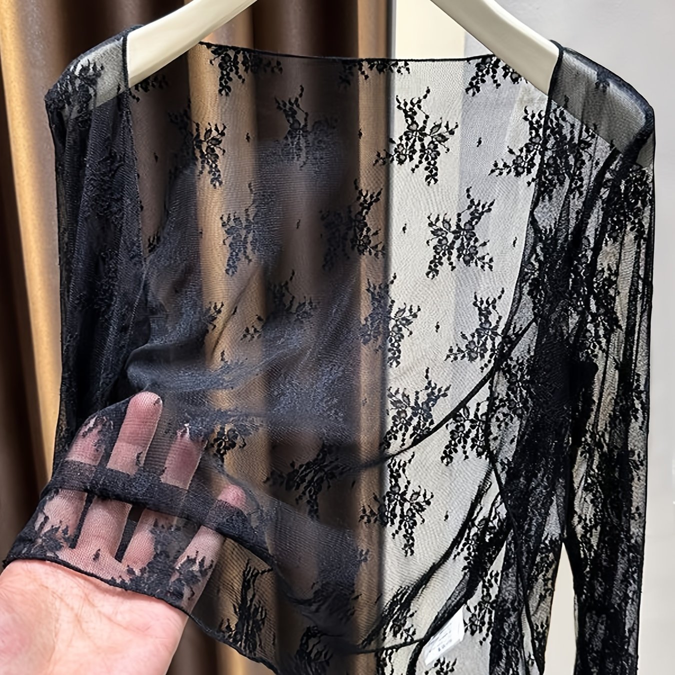 TEMU 신상 스타일 레이스 얇은 오픈 프론트 가디건 여성용 시어 햇빛 가리개 숄 젠틀 스타일 아우터 에어컨 셔츠 숏 탑