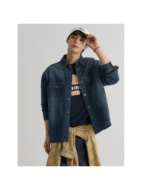 [에잇세컨즈] 긴소매 워싱 데님 셔츠네이비 (456364CCBR)