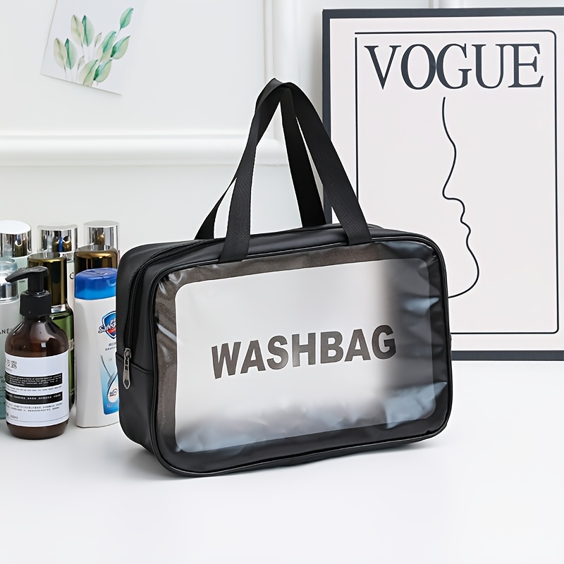 TEMU 지퍼 클로저 & 체인 링크 더블 핸들이 있는 투명 화장품 & 여행용 화장품 정리함 - 가벼운 접이식 내구성 가방 /, 약물 보관, 일상 사용 & 여행용 - 투명 메이크업 케이스 (손세탁 가능)