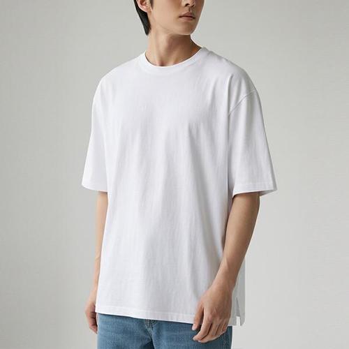국내제작 20수 레이어드 오버핏 반팔 티셔츠 옆트임 순면 무지 롱 이너 반팔티