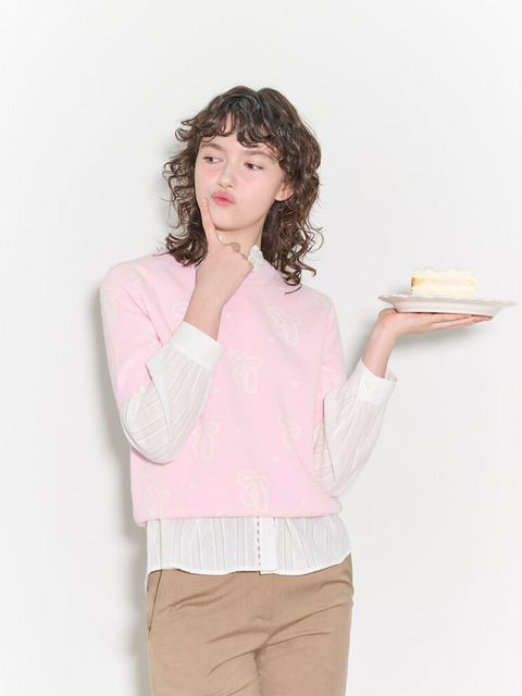 [빈폴레이디스] [B. my] 리본 패턴 반소매 니트핑크 (BF5251N02X)