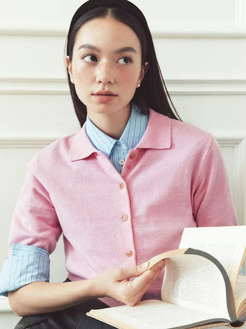 [빈폴레이디스][B. my] 코튼 울 T칼라 반소매 카디건 - 핑크 (BF485AN01X)