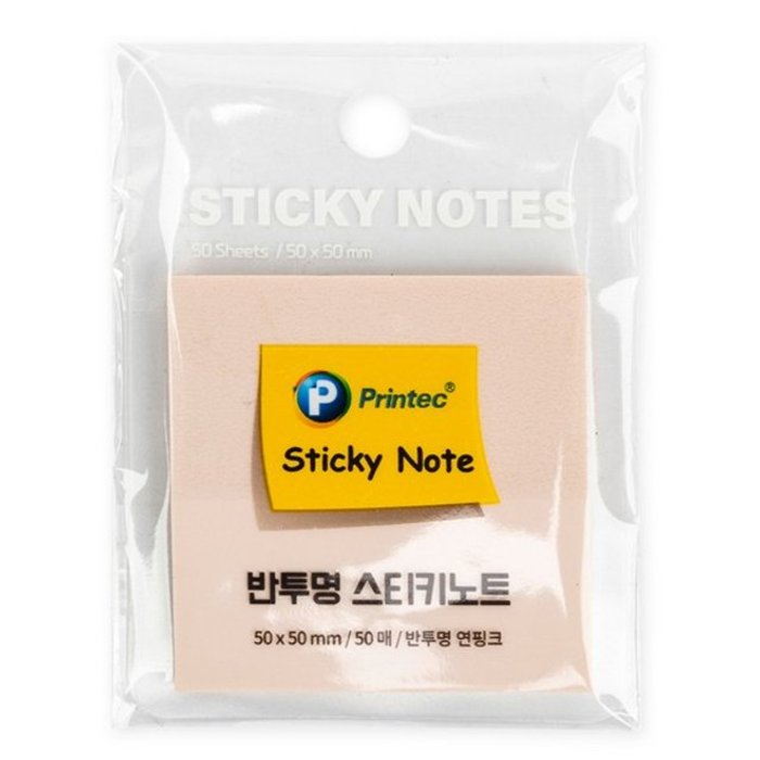 오피스넥스 프린텍 반투명 스티키노트 CL5050P 연핑크 50매50x50