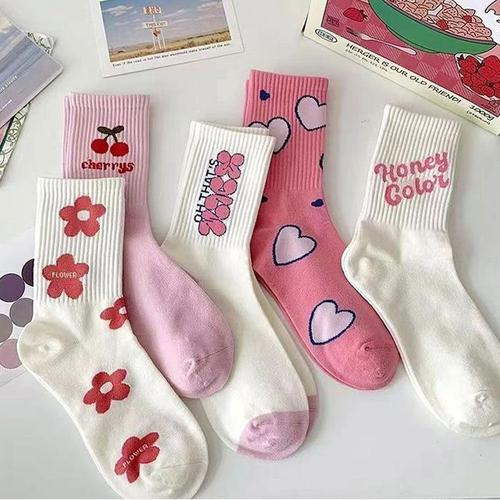 [OFM6O582]여성 반골지 패션 중목 양말 X2개 핑크 포인트
