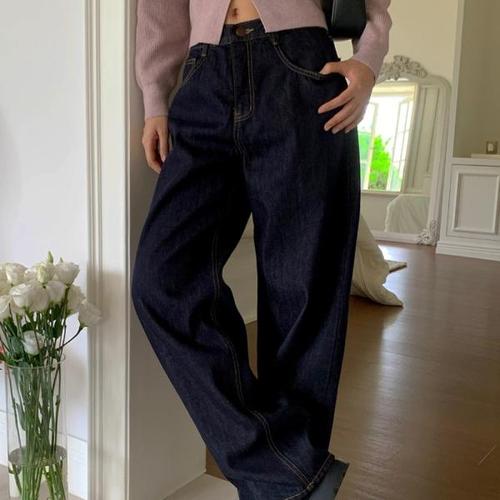 [옷자락]여자 엑스라지 매끈한 엔지니어드진 자수 y2k 청바지