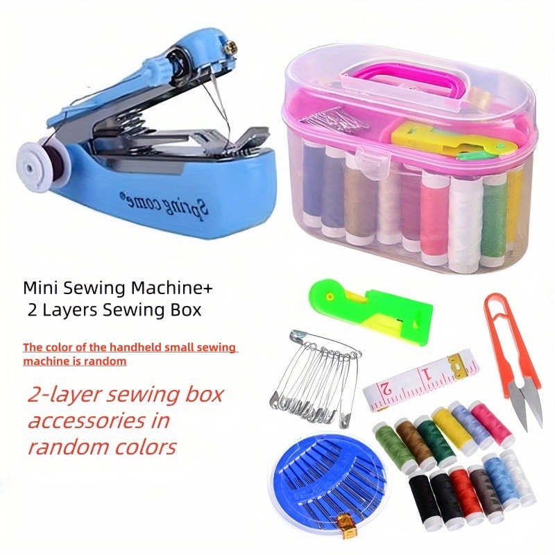 TEMU 휴대용 소형 재봉틀, PP 재질의 휴대용 재봉 상자, 재봉 키트 및 원단 바늘 및 실을 포함한 도구의 컬렉션