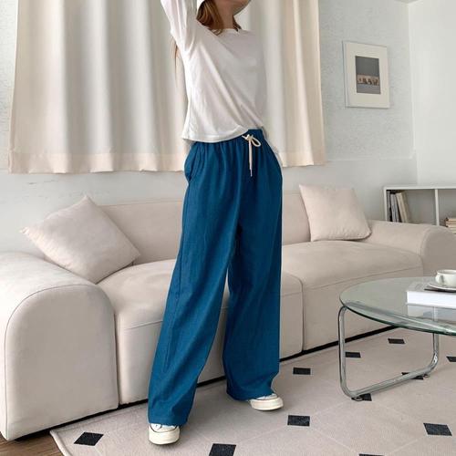 [다잇템]여자 엘라스틱 밴딩청바지 와이드데님 팬츠_4