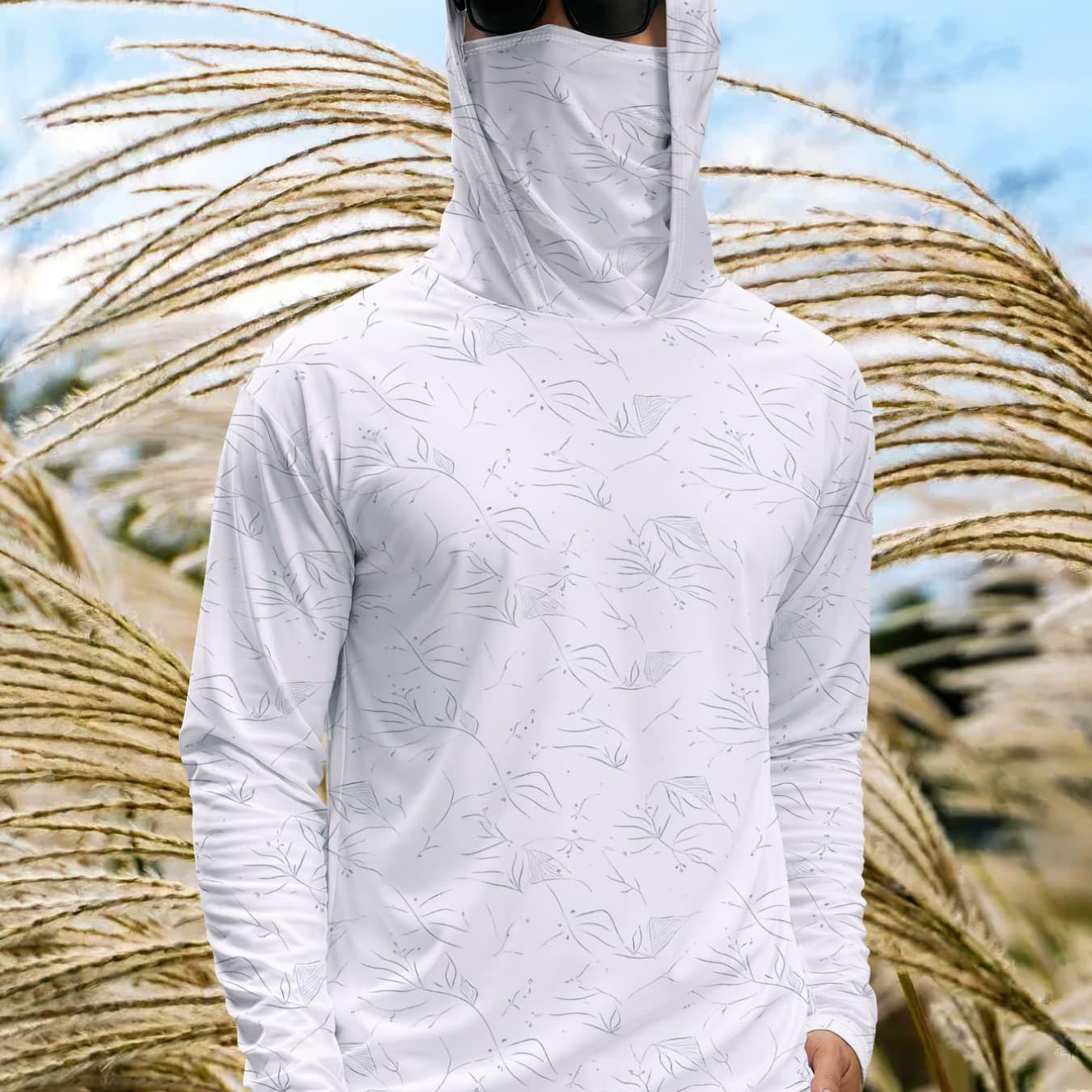 TEMU 남성용 낚시 후드 발라클라바 긴소매 아웃도어 통기성 속건성 경량 피부 친화적 나뭇잎 프린트 낚시 의류