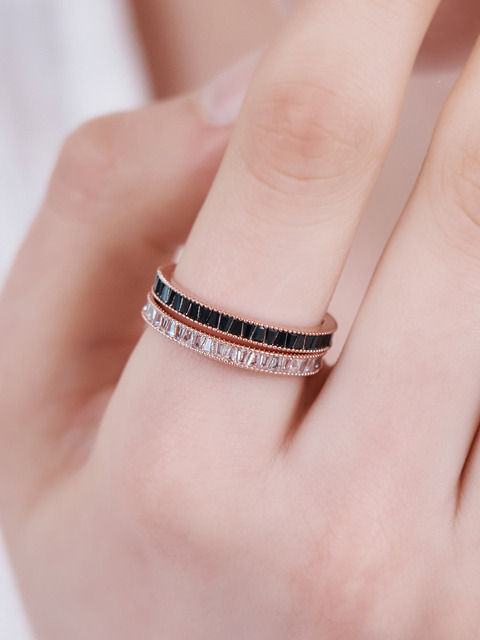 [엘르주얼리] 화이트 블랙 스톤 레이어드 링 2종 세트 ELBRWR146