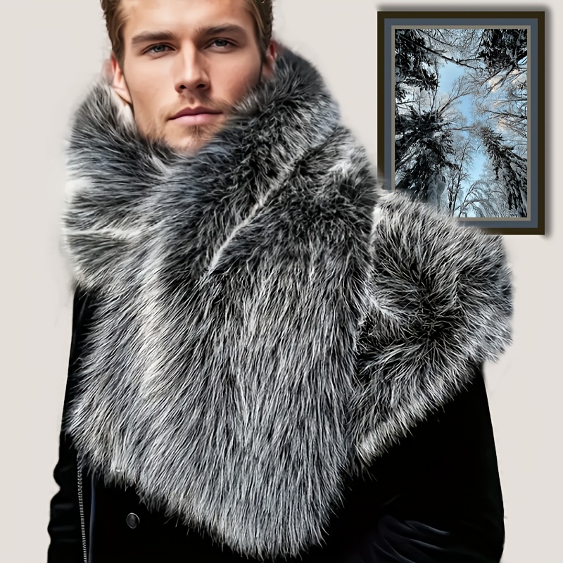 TEMU 남성용 고급 플러시 모피 스타일 인조 모피 스카프 - 초극세사 따뜻한 겨울 칼라 랩, 플러시 질감 & 옴브레, 골드 톤 액센트가 있는 우아한 단색 디자인, 손세탁 가능한 고급 겨울 액세서리, 겨울 스카프 | 우아한 겨울 액세서리 | 플러시 T