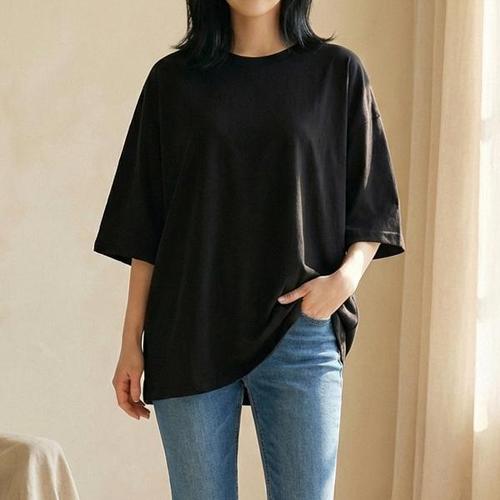 5장 세트 남녀공용 빅사이즈 링클프리 무지 스판 오버핏 7부 티셔츠 (SCC5278PT)