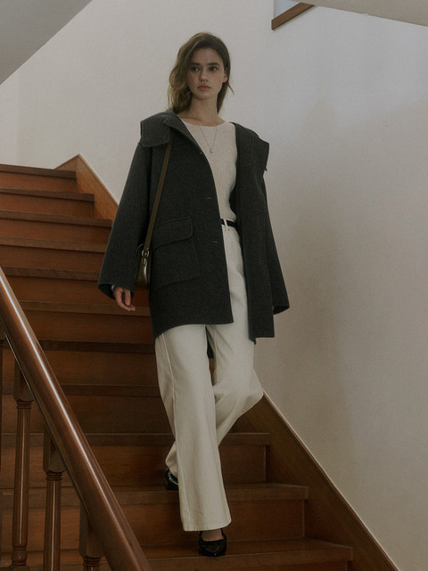 [최초가 179,000원] 24FW 폭스블렌디드 이중직 후드니트코트