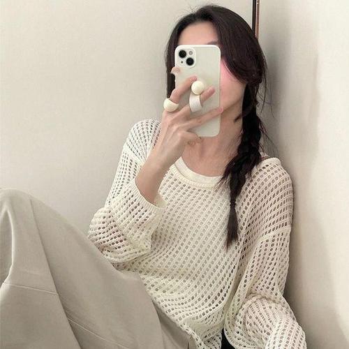 [에이치플러스몰]그물니트 썸머 루즈핏긴팔 라운드 여름니트 니트