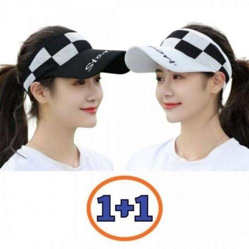 [에이치플러스몰]1+1 여성골프모자 여름 골프 썬캡 체크 챙넓은 모자 (
