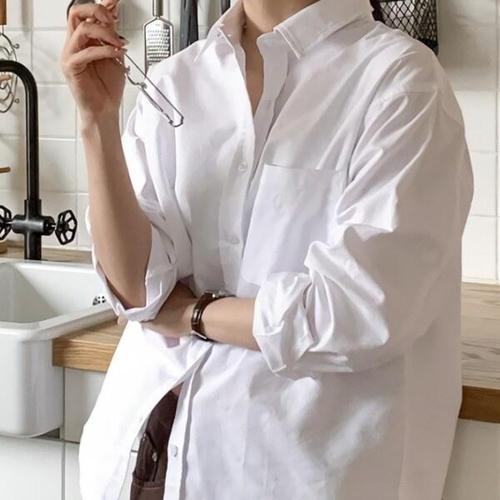 [디자이너몰]여성 봄 여름 오버핏 무지 포켓 코튼 셔츠