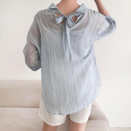 여성 여름 루즈핏 쉬폰 시스루 셔츠 블라우스 남방 레이어드블라우스