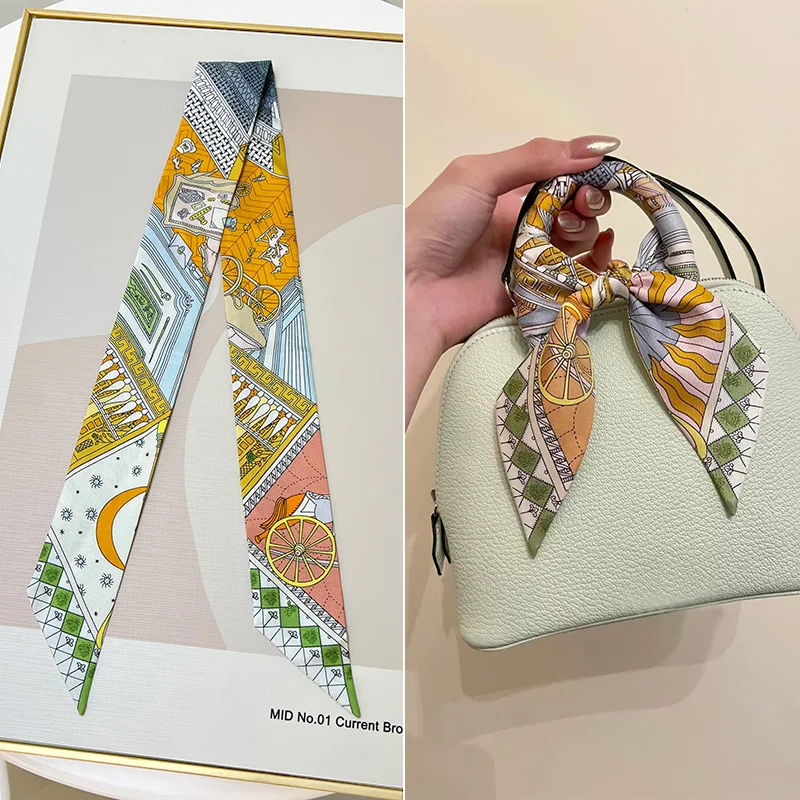 세련된 작은 실크 스카프 핸들 랩 장식 매듭 밴드 핸드백용 폴리에스터 섬유 봄 여름 가을 겨울 남녀공용