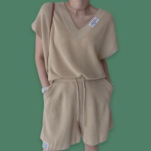 [에이치플러스몰]니트 여성 추천 셋업 나시 꾸안꾸 반바지 여름 투피스