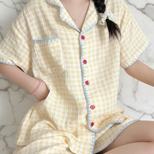 [미라클세븐]여성 여름 체크 패턴 반팔 투피스 잠옷 세트