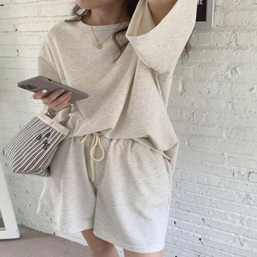ANYOU 여성 신모델 트렌디한 상하의 정장 스포츠 유행 날씬해 반팔상의+반바지 밴딩