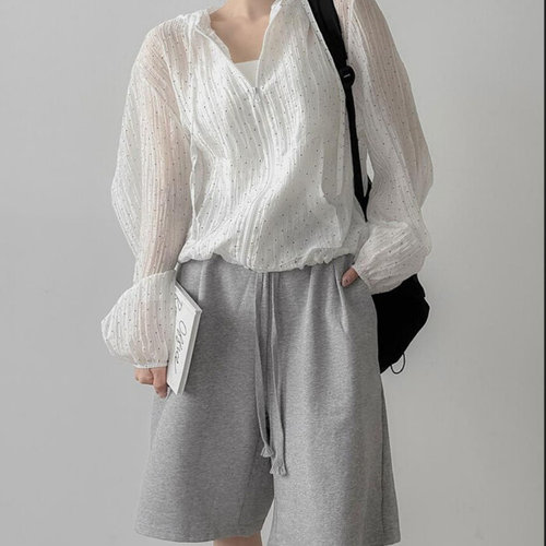 보니제이 / 경량 여름 여성 바람막이 자외선차단 시스루 땡땡이 2color